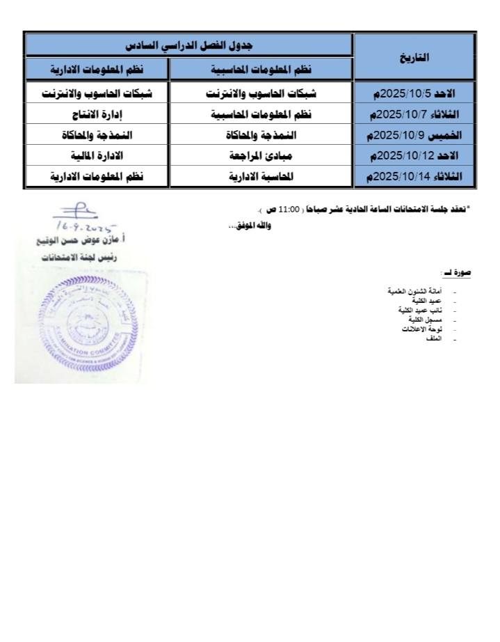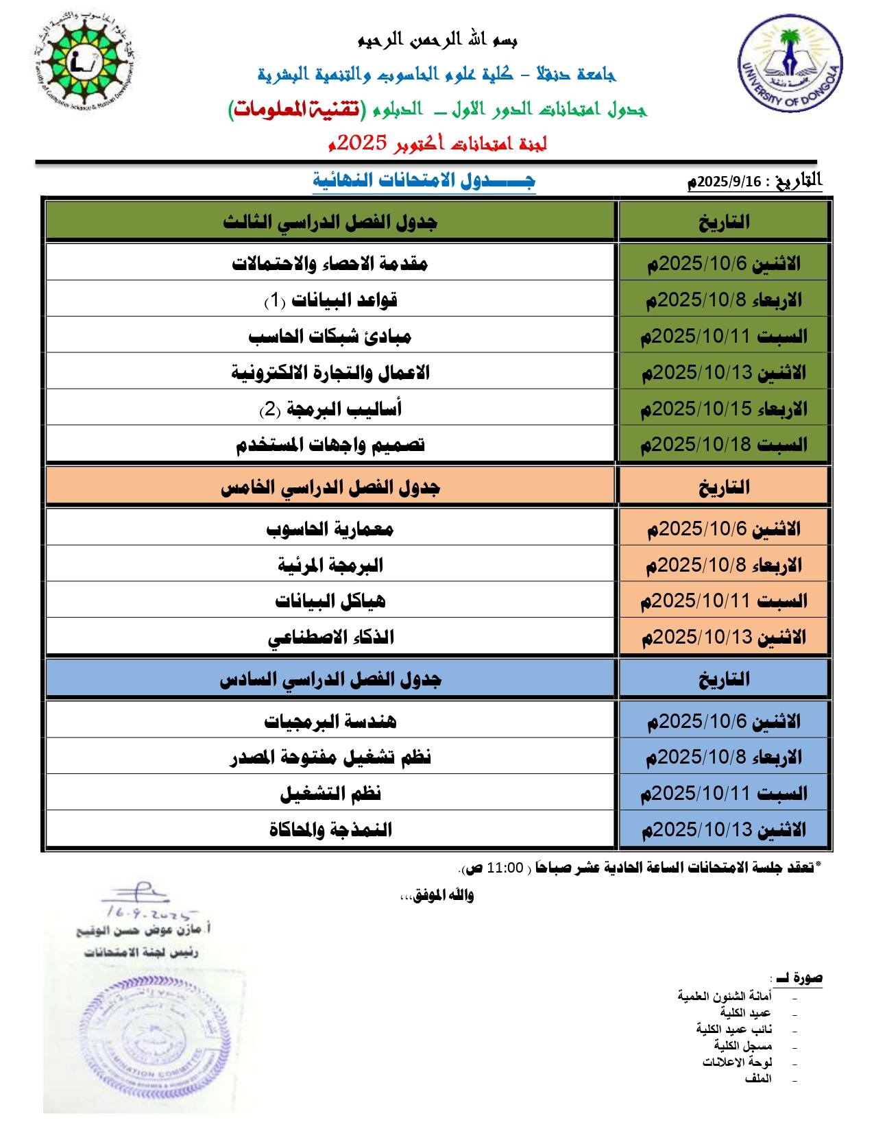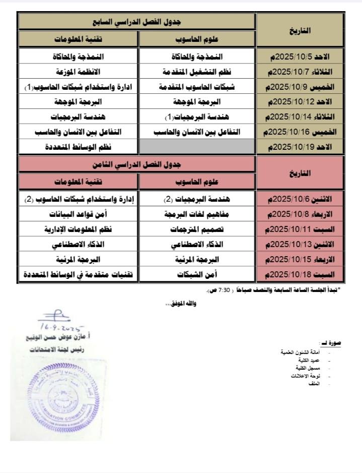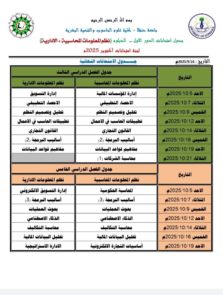 جداول امتحانات الدور الاول -دورة 2025م لطلاب البكالريوس والدبلوم